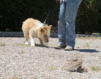 | Hello Roger, I just wanted to let you know that since my boy CJ has been through your Snake Avoidance Training, he has alerted me to the presence of Rattlesnakes on 4 different occasions - twice in our own yard, once in the FICO pecan orchard and once out in the desert. I have nothing but praise for your training methods and I can certainly attest that it works. Boyd G. 2017 |