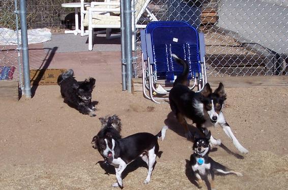 supervised indoor/outdoor environment. Clean water and toys are provided. Our Doggie